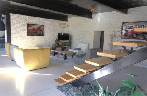 Charentaise with an industrial look is located in Colombiers. Charentaise with an industrial look provides accommodation, featuring Child Friendly, Internet, Laundry, among other amenities. This Villa features Child Friendly, Internet, Laundry, to make your stay a comfortable one.