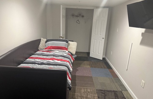 Nestled in Bowie, this delightful condo offers 2 cozy bedrooms - one with a queen bed and the other with a twin bed. The bathroom is equipped with a shower and a hair dryer for your convenience. Plus, there's an additional living room space with a comfy sofa bed. Whether you're looking for a quaint retreat or a soothing getaway, this charming property has everything you need for a relaxing stay. We look forward to hosting you at our place.