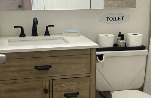 Nestled in Phoenix, this delightful house offers 3 bedrooms - 2 bedrooms with queen beds and 1 bedroom with two twin beds. Two bathrooms one equipped with tub & shower, the other with shower. Both bathrooms have towels, soap, shampoo, conditioner, and hair dryers. The property also features A/C, and heating. Completely stocked kitchen with dishes, bakeware, utensils, and coffee maker. Backyard is very lush with greenery, has an outdoor dining table, and pool. Experience what Phoenix has to offer with a stay at our amazing house.