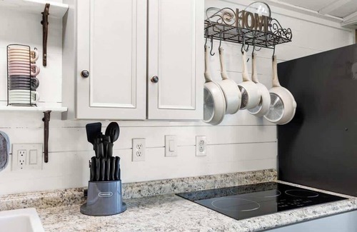 The kitchen is stocked with everything you need — from cookware to small appliances — to create your favorite dishes at home.