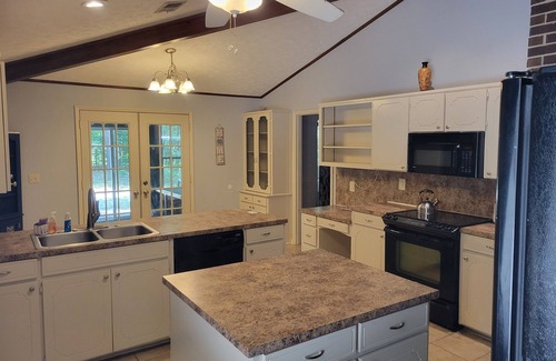 Get ready to relax in this 3-bedroom house on the edge of town. This lovely property offers a comfortable and inviting atmosphere for guests get away or entertain. With 1 queen bed, 2 bunk beds, 1 twin bed, ping-pong, lovesack, fire ring, there's plenty of space for everyone to unwind. The house features 2 bathrooms, complete with a shower and bathtub for your convenience. You'll find all the essentials you need, including washer and dryer, 2 tvs, fenced in yard, and WiFi. Plus, there's an additional living room with a cozy sofa bed. Whether you're exploring the city or simply enjoying a quiet evening in, our fabulous house is the perfect home away from home. We'll be available to answer any questions while you stay at our place. 7 mins to walmart, 25 mins to Base, 20 mins to Downtown Columbus, 10 mins to Flat Rock Park