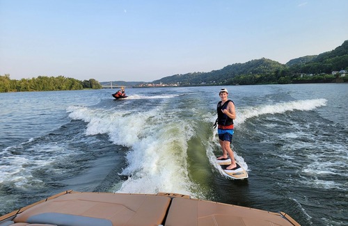 Stay comfortably on the Ohio River at this 4-bedroom house with a dock for your boat or jet skis. With 2 king beds, 2 queen beds, and 1 sofa bed, this brilliant property offers plenty of space for guests. Enjoy the convenience of WiFi, a washing machine, and AC during your stay. Relax in one of the 4 bathrooms, complete with a shower and jetted bathtub. An enormous living room with a sofa bed provides additional space for relaxation with numerous chairs and couches. In this massive living room, enjoy a fire while playing foosball, watching TV, or eating dinner. There is also a separate Ping-Pong room to enjoy during your stay. A great place to call homebase while you're away on your boat exploring local restaurants like Skippers or Ripley Boat club. Visit the Manchester Islands under an hour away or dock in Maysville exploring local eateries within walking distance from the public docks. Enjoy fine dining in the evening at Caproni's on the River or DeSha's within a 10 minute drive in Maysville. For a longer river cruise, explore Augusta, Kentucky 13 miles down river using their public dock to explore this quaint small town with wonderful places for breakfast lunch or dinner. Bring firewood to relax outside along the river by the firepit and watch river traffic meander by. Or, sit in the hot tub on the massive deck and enjoy the view. This part of the river is just beautiful! You can drive 5 hours to other lakes, and spend a lot more money, but this property is well worth the $. There is a free boat ramp just 2 miles away in Aberdeen, and you can store your trailer onsite.