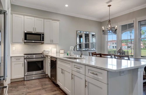 Villa Lago offers a collection of charming two-story Mediterranean-style homes, beautifully set around a serene canal and nestled amid the picturesque fairways of the Baytowne Golf Course. These vacation rentals feature stylish coastal influences, granite countertops, and modern upgrades for an enhanced stay. Each individual home comes with its own private driveway and spacious, open layout, providing the ultimate in comfort and convenience. Guests enjoy access to the neighborhood's exclusive community pool and recreational facilities located at the entrance. What sets Villa Lago apart is its exceptional proximity to The Grand Sandestin and the vibrant Village of Baytowne Wharf, offering delightful views of either the Baytowne Golf Course or the peaceful canal. Perfect for families, golf enthusiasts, or memorable getaways with friends, Villa Lago offers a tranquil retreat with everything you need for a relaxing vacation.