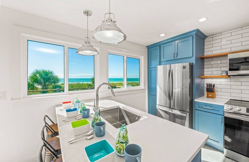 Wake up to the soothing sound of the waves and take in panoramic Gulf views at High Tide, a spectacular three bedroom, three bathroom beachfront retreat nestled on the north end of Anna Maria Island. With ocean views, a beachfront patio, and walkable access to Pine Avenue’s charming shops and restaurants. This coastal gem is the perfect setting for families or friends looking to unwind, explore, and savor the island lifestyle.