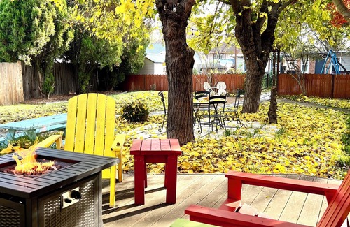 The fairytale-like yard is a guest favorite, with canopy trees, a hammock, and twinkling string lights. Gather around the deck’s fire pit or visit the adorable silkie petting zoo, complete with a treehouse in the chicken coop—a hit with kids and animal lovers! The safe East Sacramento neighborhood offers driveway parking or free street parking.