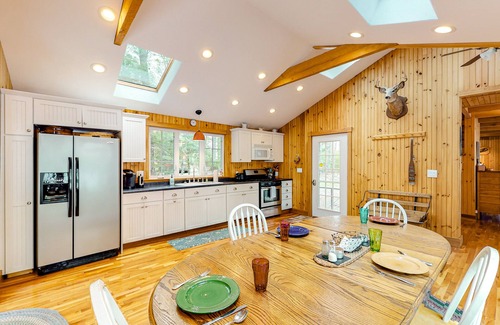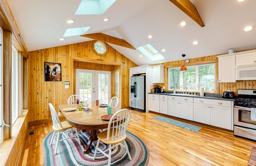 Escape to a tranquil lake getaway in the beautiful countryside of Maine. A romantic getaway awaits in this one-bedroom home with a dock, where you can paddleboard, fish, or canoe to your heart's desire. History buffs will love touring attractions like The Strand Theatre, Maine Lighthouse Museum, and the Farnswoth Art Museum. Enjoy local eateries, arts, entertainment, and an array of attractions like golf and sightseeing to whisk you away on a magical vacation you won't soon forget.