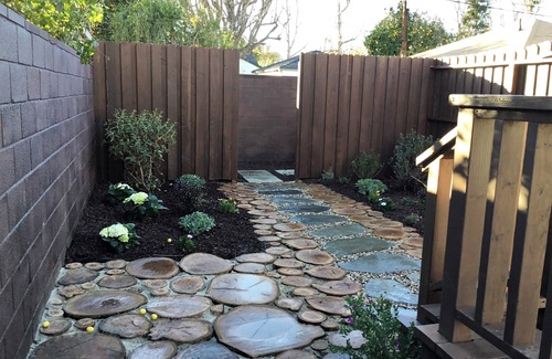 There are custom cabinets with quartz counters in kitchen and bathroom. You will find this home complete with kitchenware, linen and towels. Lovely tile floors and wood floors throughout. The kitchen is fully equipped with all major and countertop appliances and everything you need to cook a delicious meal if you'd like. There is a large 48" TV with a blue ray player in main room and a 38" in the bedroom. Cable television with all movie channels is available. The entire property is newly landscaped, boasting gorgeous stone pathways and plentiful new plants. The fully private back yard has a beautiful deck with stone pathway and artistic decor using wood trunks as pathways. Enjoy a cup of tea or coffee in the mornings or a glass of wine or cocktail in the evenings on your patio. You will love it here!