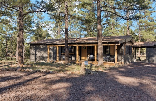 Escape to the pines in this newly renovated 2-bedroom, 2-bath cabin with a trendy black-and-oak exterior and cozy, comfy furnishings inside. Relax by the fireplace, grill on the deck, or gather around the fire pit under the stars. Family-friendly touches include toys and games for kids, making it perfect for a getaway with loved ones. Stylish yet welcoming, this Show Low retreat blends modern design with the charm of the pines.