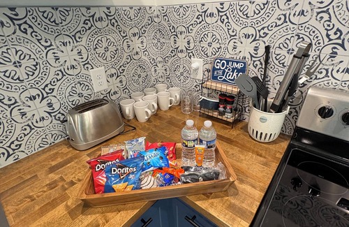 Charming 900Sqft lakefront "tiny" house that packs a punch into such a small space! Private bedroom on the main floor along with a full bath, open kitchen, dining and living space with tons of natural light! There is also a loft bedroom that has its own bathroom with a shower! The bedroom, loft, and main living space all have independently adjustable AC units for maximum comfort! Coming off the back deck it is an easy walk to the swim platform dock.