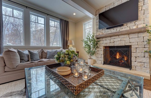 Experience unparalleled luxury in the heart of Ketchum, Idaho, at this exquisite rental property just minutes from downtown and the Warm Springs Ski Lodge. Designed to accommodate your needs as either a 3-bedroom plus den or a 4-bedroom home, it offers versatile comfort with one king bed, two queen beds, and a sofa bed. Enjoy three modern bathrooms, including a primary bath with a relaxing soaking tub.
