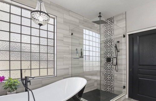 The home features a large driveway & ample free street parking for any cars you may have with you for your trip! Enter directly enter the large living room & high ceilings. There is one bedroom located on the first floor with the other four upstairs, including the master. We've provided tons of board games for any kids you may have with you on your trip along with a poker set for the adults. Backyard features a lovely pool perfect for entertaining the crew and escaping the heat!