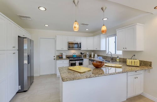 Four bedrooms grace this haven, including a master suite with private bathrooms and walk-in closets. Two bedrooms are adorned with a king and queen bed, while the casita welcomes you with two sets of bunk beds (twin over full) and a private entrance. There are a total of 4 TVs for your enjoyment.