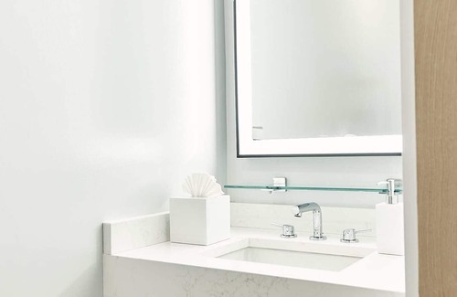 The tall oak finished entryway of this urban home guides you into a spacious open concept floorplan and 11.5-foot ceilings. Colors of soft greys, washed and reclaimed oak and a dusting of red brick, from the surrounding historic buildings, are a harmonious tribute to Portland’s dramatic natural and architectural beauty. You’ll find every aspect of your stay is shaped to create an upscale residential experience.