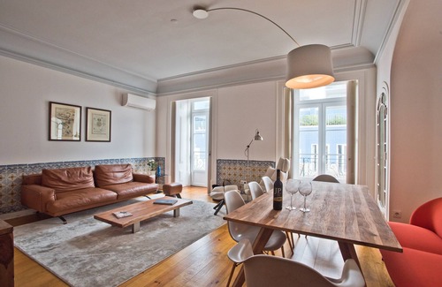 This wonderful 3 bedroom apartment in the famous Rua do Alecrim is a true jewel in the heart of Lisbon. Entirely renovated, it has the charm of the Portuguese tradicional buildings with its high ceilings, original tiles on the walls, the apparent "Gaiolas Pombalinas", natural wooden floors and huge windows. Located between Chiado and Baixa, it couldn't be more central. And if this wasn't enough, you still have the view of the of the Tagus River!