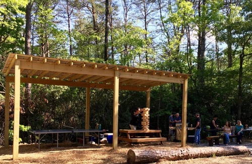 • Pavilion with Picnic Table, Outdoor Ping Pong Table, and fire pit