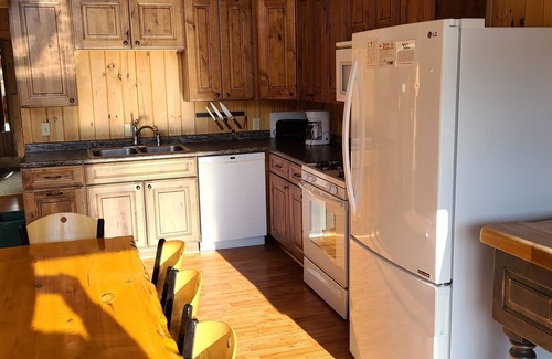 This vacation home has lots of living space for your family and friends, as well as a prime location with fabulous views of the of the lake from all living areas. The big stone fireplace and knotty pine interior gives this cabin a real north-woods flavor. Flat screen HD TV's, with 100+ channels Dish Network TV.