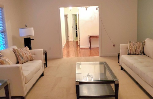 Discover the beauty of Anderson from this 4-bedroom house. Nestled in a peaceful neighborhood, this charming property offers a quaint and cozy atmosphere for guests. With 3 queen beds and 2 twin beds, and a queen pull out sofa, it comfortably accommodates a family or group of friends. The house features a jetted bathtub, shower, and bathtub in the 3 bathrooms, ensuring a relaxing stay. You'll also find amenities like heating, a washing machine, WiFi, AC, and an iron. Additionally, there is an inviting living room with a sofa bed for extra space. Our place will help you feel at home while you're traveling in Anderson.