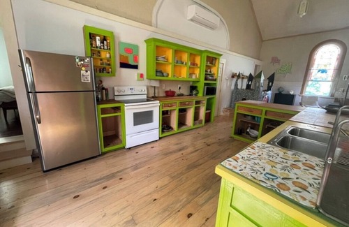 Stay in a one-of-a-kind 19th century converted church in the heart of Penns Valley, just 25 minutes from Penn State University Park, State College. Light pours through original stained-glass windows onto a spacious, family-friendly interior. Take day trips to PSU football games, Creamery, Penn’s Cave, fish at Penns Creek, boat and hike at Bald Eagle State Park, ski/snowboard & go-kart at Tussey Mountain, and swim, kayak or bird watch Raystown Lake. This listing is under new ownership and proceeds are reinvested into the church house.