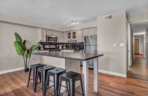Welcome to our serene and stylish River Cleveland Apartment! Enjoy 1200+ sq ft. In the heart of Cleveland's trendy Flats neighborhood! Our apartment is within walking distance to a plethora of dining, entertainment, and nightlife options. The nearby Riverwalk offers a stroll along the waterfront, while the iconic Rock and Roll Hall of Fame, Cleveland Aquarium, Cleveland Sports, and other attractions are just a short drive away.