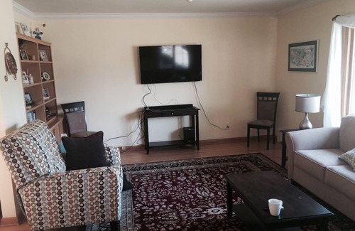 There is a king bed and 4 queen beds, 2 of the beds are in the main part of the basement. Our home offers WiFi and cable TV.