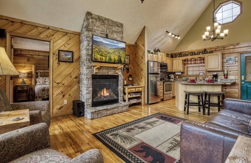 Pigeon Forge Cabin Rental - A Beary Good Time, Unit 514, is a 3-bedroom, 3-bath log cabin that is located by Dollywood and Dolly’s Splash Country, and only 3 miles from the Parkway in Pigeon Forge. Not many cabins have their own mini Putt-Putt. But this one does! The kids will love our five challenging courses. Free Wi-Fi available at the cabin. There is only one step at the entrance to the cabin for easy accessibility.
