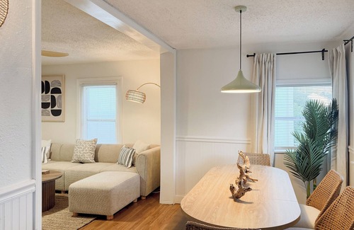 Stay at this elevated coastal retreat with a neutral palette, turquoise accents, and natural wood touches. This 3 bed, 2 bath home sleeps 8 and features a full kitchen, private backyard, firepit, gazebo, & cowboy pool. Nestled in a sought after area near top restaurants, bars, hospitals, golf courses, and attractions. Perfect for families, friends, or a relaxing getaway. Pet-friendly & thoughtfully designed for comfort, style, and unforgettable vibes.