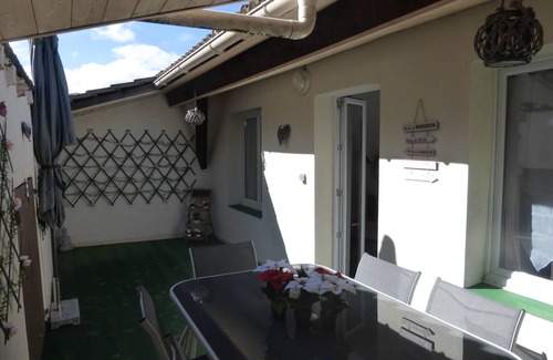 - 1 semi-covered terrace with parasol and garden furniture for 6 people.