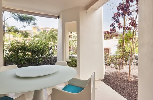 In "Colinas de los Menceyes" the entrance to Palm-Mar, you can enjoy subtropical gardens, waterfalls and two swimming pools, one of which and the children's pool are heated, a spacious solarium with sunbeds and parasols. "Colinas de los Menceyes" has a fully equipped gym with Technogym equipment. Only a ten-minute walk away you will find the shopping centre with a wide variety of gastronomic choices and the natural beach "la Arenita"