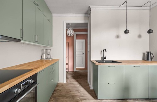 Experience vibrant city living in our stylish apartment located in the middle of Bergen! This colorful and well-designed spaces features - two comfortable bedrooms. Each room has a cozy double bed, ensuring a restful sleep for up to four guests. The apartment also offers a fully equipped kitchen and a cozy living room for relaxing.