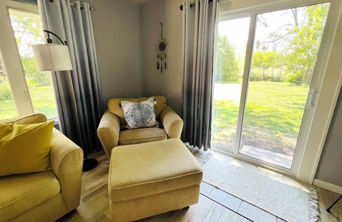 Very peaceful property to enjoy family time playing bean bags in the backyard, grilling out on the charcoal grill, picking some raspberries off the bushes on property, or cooking some Smores around the fire in the evening while watching the sunset go down, or to enjoy some alone time catching up on a good book, while listening to the birds hanging out in the Mulberry tree in the backyard.