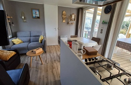 Comfortable mobile home near the Atlantic is located in Bourgenay. Comfortable mobile home near the Atlantic provides accommodation, featuring Parking, Pool, TV, among other amenities. This Cottage features Parking, Pool, TV, to make your stay a comfortable one.