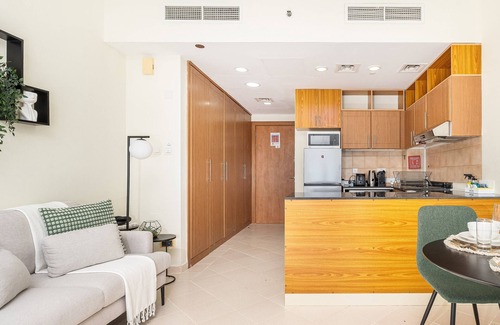 Step into our cozy studio apartment in Dubai Production City. Ideal for short weekends or monthly stays, it's fully furnished for travelers, corporate individuals, and young professionals. The kitchen blends light green, cream, and wooden elements, adding to the comfort. The apartment features a sitting area, dining area, comfortable bed, and a spacious cupboard for keeping things organized. Enjoy water views from the balcony's sitting area. With amenities like high-speed Wi-Fi, smart devices, and all-inclusive bills, this fully equipped apartment offers a comfortable and hassle-free stay.Property Amenities:✓ Living Area with Sofa Set and smart TV✓ Fully equipped Kitchen✓ Dining Area✓ Full Bathroom Balcony✓ King Bed✓ Fully furnished and equipped, ready to move-inBuilding Features:✓ Swimming pool✓ Gym and Fitness Facilities✓ Kids’ play area✓ BBQ Area✓ Billiard Room✓ Tennis Courts✓ Open lawns and parks✓ Jogging Track✓ Allocated Parking included✓ 24/7 SecurityIncluded in the Price:✓ All utilities are included (Electricity, water, High Speed Internet, TV with Cable Channels, AC/Chiller)✓ Access to all building/community facilities for residents such as the pool and the gym.✓ In house maintenance team just a call away.Additional Services:✓ Housekeeping services✓ Extra bed linen/towels✓ Baby cot baby chair✓ Foldable bedAdditional Fees: 5% VAT Dubai Tourism Fee (AED 10 per night for the first 30 nights only)Security Deposit (refundable within 7 to 14 business days):- AED 800 for daily- AED 1,200 for monthly*Prices are subject to change due to season and availability. Terms and conditions apply.About the Building:Lago Vista offers a contemporary residential experience that seamlessly combines style and functionality. This modern building ensures easy access to key city destinations and boasts well-appointed interiors with a sleek aesthetic. Residents can enjoy a variety of amenities, including landscaped gardens, a fitness center, and a communal swimming pool. With top-notch security, ample parking, and the potential for retail spaces, Lago Vista is designed to provide a diverse and convenient lifestyle. Experience the perfect blend of elegance and comfort at the heart of Dubai Production City.About the Area:Formerly known as International Media Production Zone (IMPZ), Dubai Production City is a Free Zone commercial and residential hub catering to the business of media production, with a considerable residential element in planning and progress. Its location along theMohammed bin Zayed highway, at the junction with Al Khail Road, means everywhere in Dubai is easily accessible by car.