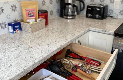 Please take out garbage and recyclables daily, extra bags are provided under the sink. Garbage and recycling bins are located beside the laundry facility.