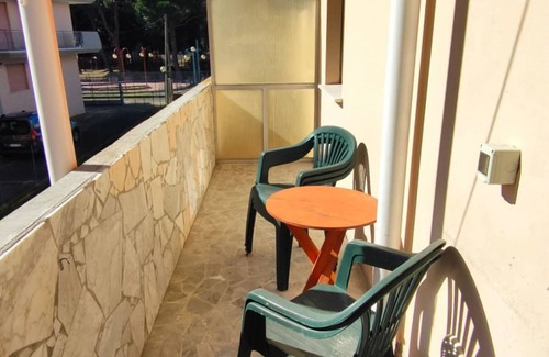 Completely renovated two-room apartment on the 1st floor, located just 550m from the beach. It's all newly furnished and comes with a living room, kitchen, a large bedroom with a double bed and a bunk bed, bathroom with large shower cubicle and a cozy balcony. Plus, must have amenities like washing machine, A/C, TV and private parking place in the internal courtyard. Pets are not allowed.