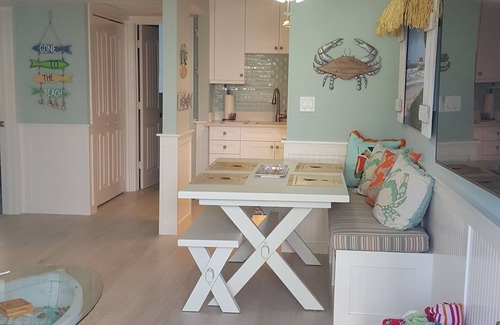 This second story condo (has a common elevator) offers that Florida Feeling Vacation Vibe. One block to an easy access beach entrance and one block from wonderful shoppes and restaurants.
