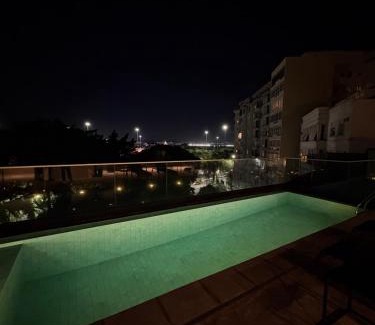 Food & DrinkTea/Coffee makerBathroomTowels/Sheets (extra fee), Toilet, Shower, Bathtub or shower, Free toiletries, Conditioner, Body soap, Private bathroom, Shampoo, Toilet paper, TowelsMedia & TechnologyMobile hotspot device, Flat-screen TV, TVGeneralIron, Trash cans, Ironing facilities, Air conditioningKitchenStovetop, Microwave, Kitchen, Toaster, Dining table, Coffee machine, Washing machine, Kitchenware, Wine glasses, Kitchenette, Oven, RefrigeratorLiving AreaSofaOutdoorsTerrace, Private poolBedroomLinens, Wardrobe or closetAccessibilityAccessible by elevator, Entire unit wheelchair accessiblePool and SpaInfinity PoolRoom AmenitiesSocket near the bed, Non-feather pillowExclusive servicesAccess to private pool, Free gym accessPhysical distancingSingle-room AC for guest accommodation |