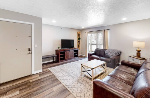 Minutes from Silver Dollar City, Table Rock, and the famous Branson Strip, this modern, three-bedroom condo is equipped with a full kitchen and a private washer/dryer. As part of The Vineyards, you’ll also enjoy access to a seasonal pool. The living room is all about comfort with two inviting sofas and a flatscreen TV with cable.