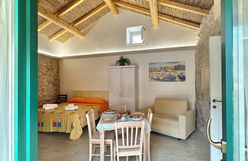 Suggestive apartement in an ancient courtyard, featuring characteristic Salentine architecture with star-shaped stone vaults. Bedroom, bathroom whith shower box, and kitchen equipped with accessories and amenities suitable for a comfortable stay. The private courtyard offers an outdoor area for dining. The village of Martano is in the heart of Grecia Salentina, just a few minutes from the magnificient beaches of the Adriatic Sea and the vibrant heart of Taranta. Pet-friendly, it will provide you with a unique stay. . City Tax: We remind you that at check-in you might have to pay the tourist city tax, according to the season. Extra: AIR CONDITIONING Free of charge , ELECTRICITY Free of charge , EXTRA CLEANING Consumption (upon request) from 01/01/2025 until 31/12/2025, EXTRA LINEN € 15,00 Per person per stay (upon request) from 01/01/2025 until 31/12/2025, HEATING Free of charge , LINEN AND TOWELS Free of charge , PET FRIENDLY € 55,00 Per stay (upon request) from 01/01/2025 until 31/12/2025, WASHING MACHINE Free of charge