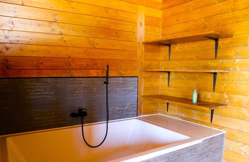 The loft-style design of the rooms means they are open, and the cabin, entirely constructed from wood, may produce characteristic sounds associated with this material.