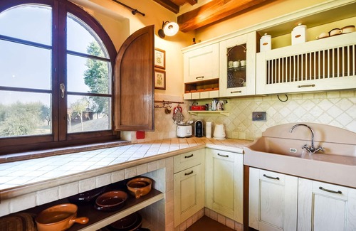 The just well renewed house has traditional Tuscan cotto floor and wood beam sealing. In the bedrooms parquet floor. Very high standard furnishings.