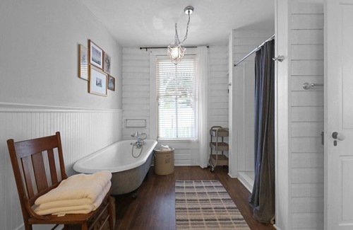 To get to the farmhouse, there are 3-5 miles of maintained gravel roads. The closest market is 12 minutes down the county road in Downtown Anderson, and they carry basic necessities and groceries. Downtown Navasota is 7 miles away, and there you'll find a grocery store, restaurants and cute shops to explore.