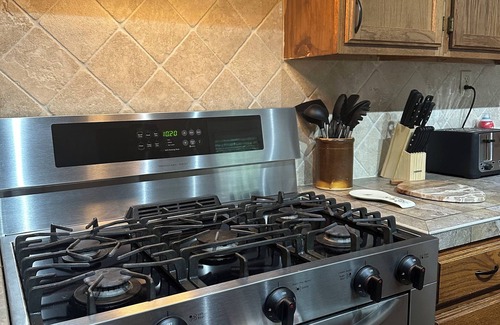 UNDER NEW OWNERSHIP/HOST - After a long day of outdoor activities enjoy relaxing in this comfortable 2-bedroom, 2-full bath house with a king bed, queen bed, and a loveseat sleeper sofa. Location is close to everything Cloudcroft has to offer. This home, Coyote Retreat, is around the corner from Zenith Park which offers pickleball courts, tennis courts, a playground and an ice skating rink in the winter. (We have 4 pickle ball rackets and balls for your use. Please return them to mudroom when finished using them. There is a $50 charge if they are lost or stollen.) This house is also walking distance to shopping and restaurants. If you’re wanting to stay inside you can cozy up by the wood burning stove/fireplace. Cook in the large kitchen fully stocked with dishes and pans. Watch a movie on the smart tv or play board games. Home is centrally heated, but there is no AC. There are three floor fans and space heaters if you need them. Coyote retreat has a large laundry/mud room with full size washer and dryer and enough room to store your outdoor gear. There is an outdoor patio that can also be accessed from the main bedroom. It has a picnic table with umbrella and small propane grill. (Please follow local fire safety laws. Clean and cover grill after use, including grease tray. Dump cooled grease in trash not the sink.) There is a front porch with chairs where you can enjoy the ponderosa pines, maple trees or the elk and mule deer passing by. There are two parking spaces, but not enough room for trailers and there is no street parking available. Also know that there is a small steep slope to get to the parking area that may be tricky in winter. We recommend 4 wheel drive. We look forward to hosting you at Coyote Retreat!
