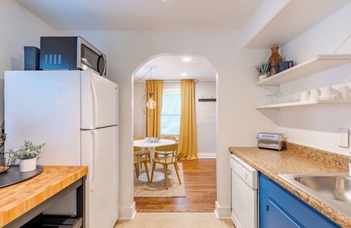 Welcome to your charming and cozy one-bedroom home in a quiet KCK neighborhood! Minutes from historic districts like 39th Street, Westport, and the Plaza, you'll have quick access to restaurants, bars, and coffee shops. Perfect for couples, solo adventurers, and business travelers. Relax in the backyard with a hammock and fire pit—your ideal retreat awaits! This property is managed by Karat Vacation Rental