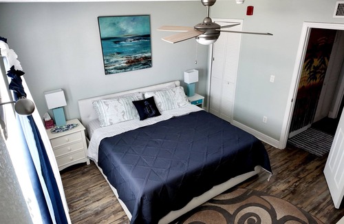 Welcome to this charming condo in North Redington Beach. This phenomenal vacation rental offers a marvelous bedroom with a comfortable king bed. The bathroom is equipped with a bidet and a hair dryer, ensuring a fantastic stay. In addition to the cozy bedroom, there is an additional living room space with a sofa bed. Stay active in the fitness room or relax in the bathtub or pool after a day of exploring. We look forward to hosting you at our place.