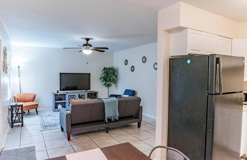 Our 2-bedroom, 1-bathroom units come equipped with smart TVs in both bedrooms and the living room. Experience the perfect blend of comfort, convenience, and natural beauty at Sugar Mill apartments.