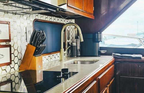 For those who love to cook, our boat is equipped with a small kitchenette complete with a sink, mini-fridge, and coffee maker, allowing you to prepare simple meals and snacks with ease. Dine al fresco on the deck under the stars for a truly magical experience.