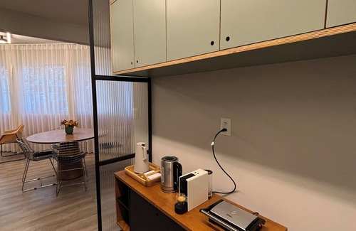 A living room, a dining area, and air conditioning are featured at this 1-bedroom, 1-bathroom rental. Enjoy the WiFi and TV. Bathroom amenities include a hair dryer, towels, and toilet paper. The kitchen is equipped with an oven, a stovetop, and a refrigerator, as well as a coffee maker, a microwave, and cookware. And you won't have to pack extra clothes, because you'll also have access to laundry facilities. Other amenities include bed sheets and a dining table.