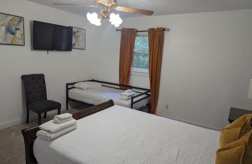 Featuring a garden, Cozy Cabin in Woods offers accommodations in Snellville. A hot tub is available for guests. There's a sun terrace and guests can use free Wifi and free private parking. Offering a patio and garden views, the spacious vacation home includes 4 bedrooms, a living room, flat-screen TV, an equipped kitchen, and 3 bathrooms with a bidet and a bath. For added privacy, the accommodation features a private entrance. You can play billiards at the vacation home. The vacation home has a picnic area where you can spend the day outdoors. Hartsfield–Jackson Atlanta International Airport is 32 miles from the property.