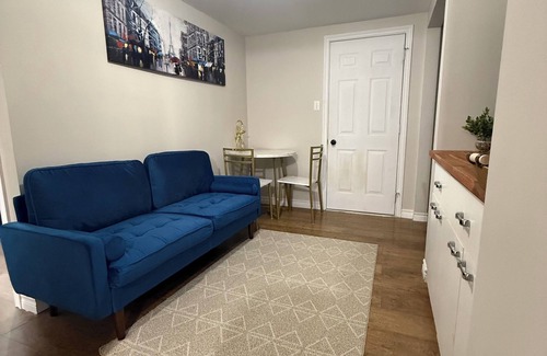 This charming apartment offers a perfect retreat with easy access to local attractions. Enjoy the cozy living spaces, a fully equipped kitchen, and a fully finished basement with 2 bedrooms and 1 bathroom. The home features two queen-sized beds, a dedicated workspace, and a coffee bar. You will appreciate the convenience of free parking and the peace of our tranquil neighborhood. Ideal for solo travelers, couples, group of friends or families.