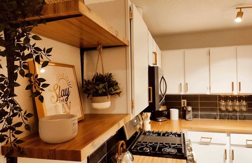 Get the Austin experience and stay at our Boho bungalow! Our home is perfect for a girl's-only trip or a family weekend. Have a cup of coffee by the indoor fireplace or whip up a meal in the well-appointed kitchen.
